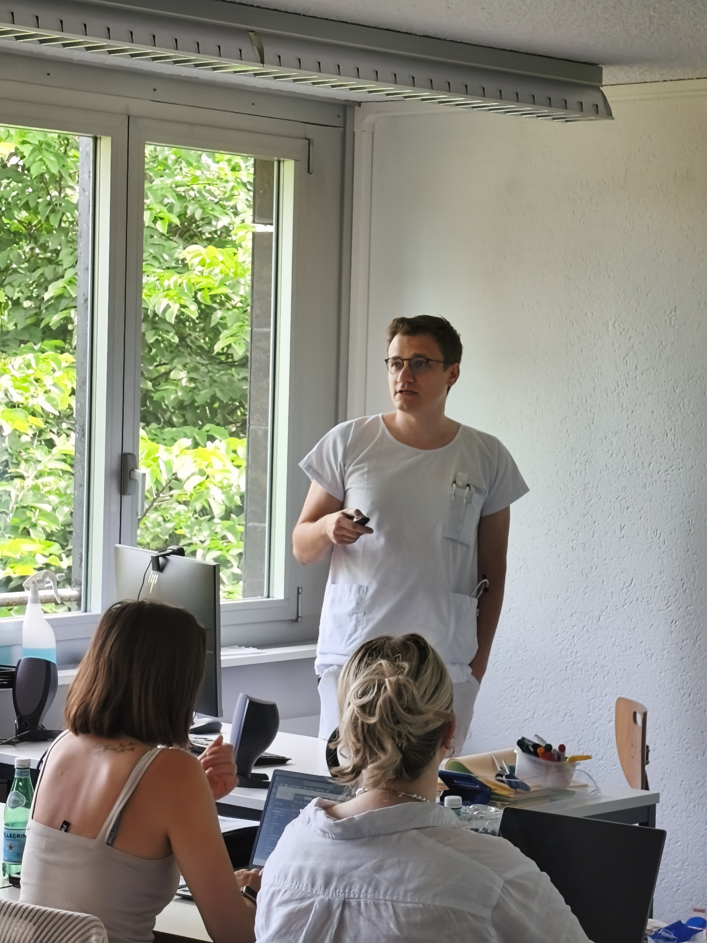 V rámci specializačních kurzů zaměřených na pacienty s demencí (Hirnleistungsschwäche), ve kterých sám vyučuji na Berner Berufsfachschule für medizinische Assistenzberufe, se účastníci seznámí s různými typy onemocnění, jejich klinickým obrazem, naučí se komunikaci s rodinami, provádění screeningových testů (např. MMSE, MoCA, test hodin) a práci s nástroji jako Braincheck[4] nebo MAGIC[5].